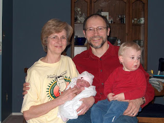 The rest of the family came to see our new baby while we were still at the hospital. Great-Grandma Cecil got to meet him just an hour or so after he joined us.